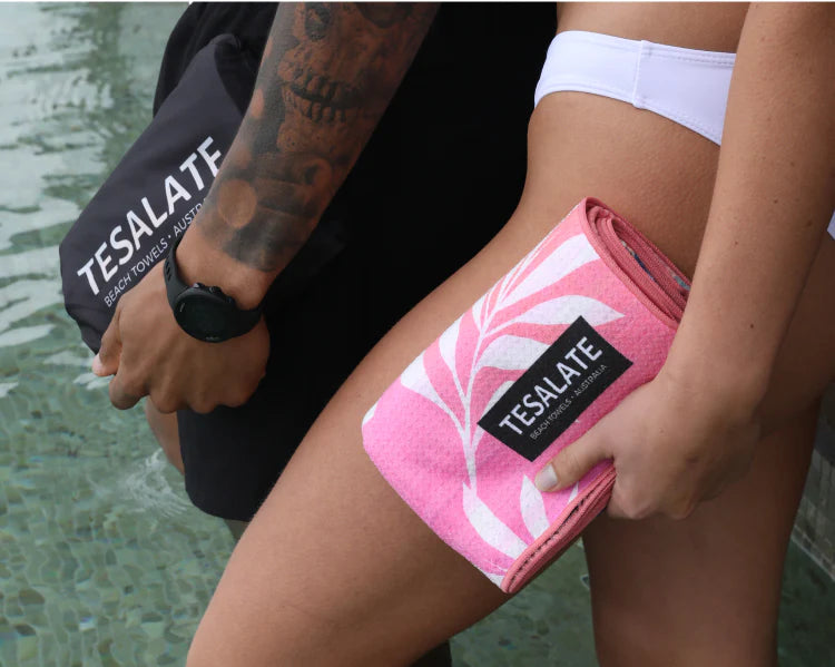Tesalate beach towels are designed to retain up to 1 liter of water and dry in half the time of a regular towel.