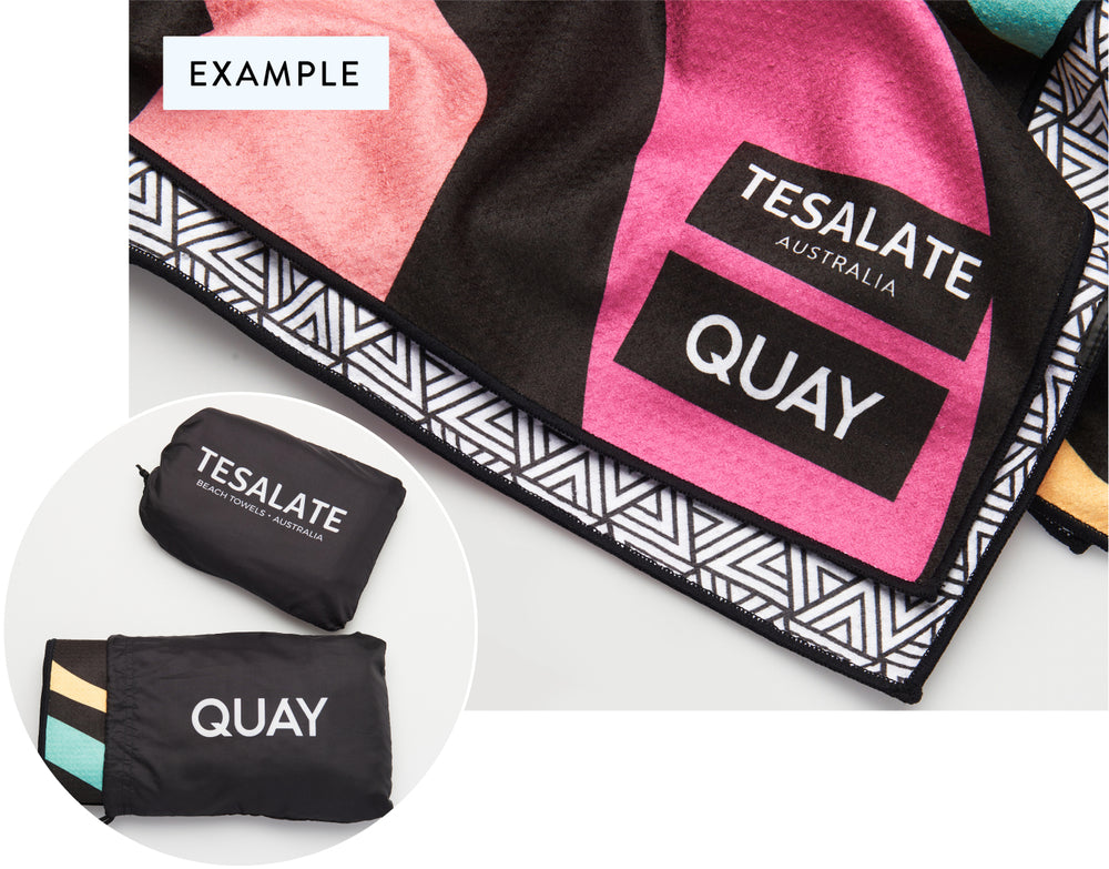 Let’s make it personal. Our team of in-house designers can add your company logo to the towel or carry pouch.